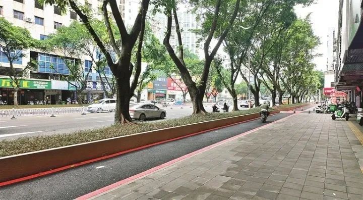 市区东湖西路改造提升,修建了树池和非机动车道。